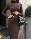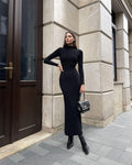 De Alina Maxi Dress accentueert je silhouet met een elegante, aansluitende pasvorm. De ribstructuur en hoge hals geven de jurk een stijlvolle en verfijnde uitstraling — ideaal voor elke gelegenheid. Draag met hakken of laarzen voor een tijdloze look.
