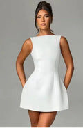 Ontdek onze elegante, minimalistische zwarte jurk, ontworpen voor elke gelegenheid. Deze jurk combineert een strakke, mouwloze bovenkant met een flatterende, uitlopende rok die je taille accentueert. De gladde stof en tijdloze snit maken het een veelzijdig item dat zowel formeel als casual gedragen kan worden. Perfect voor een avondje uit of een stijlvolle dagelijkse look, deze jurk biedt je een moeiteloze combinatie van klasse en comfort.