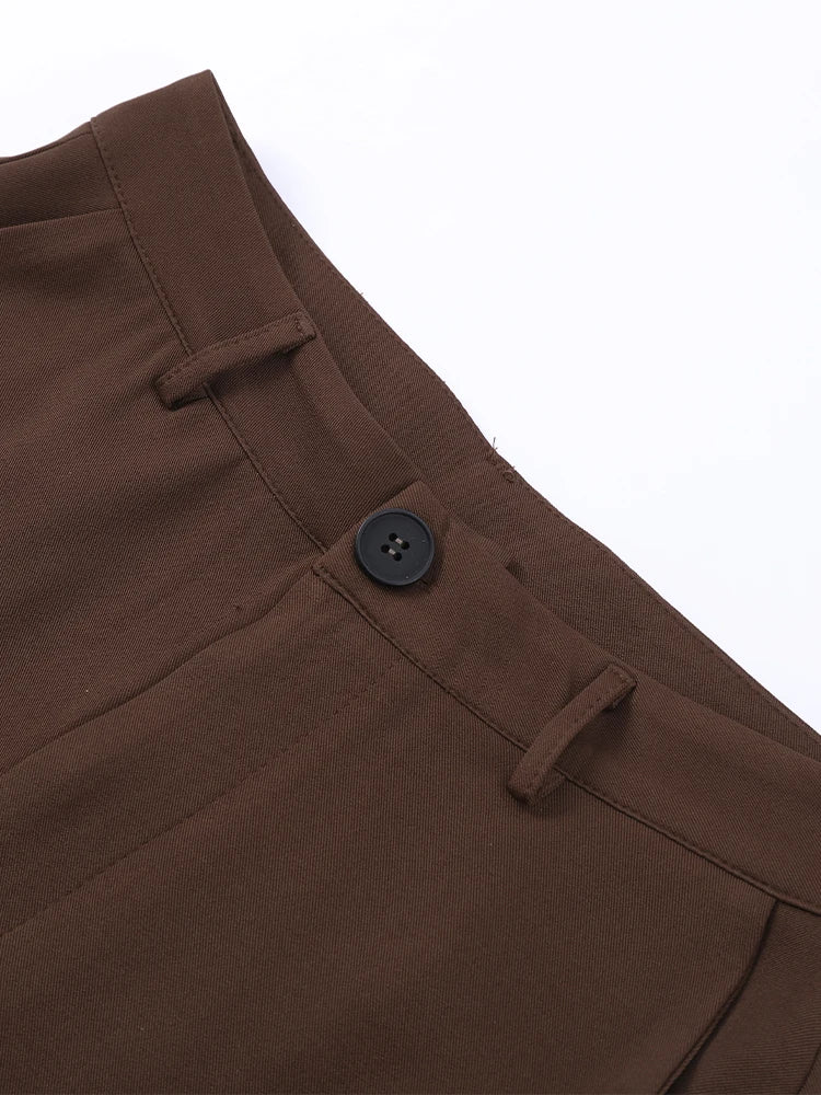 De minimalistische top met knoopdetail en de elegante, wijde broek zorgen samen voor een stijlvolle en tijdloze uitstraling.