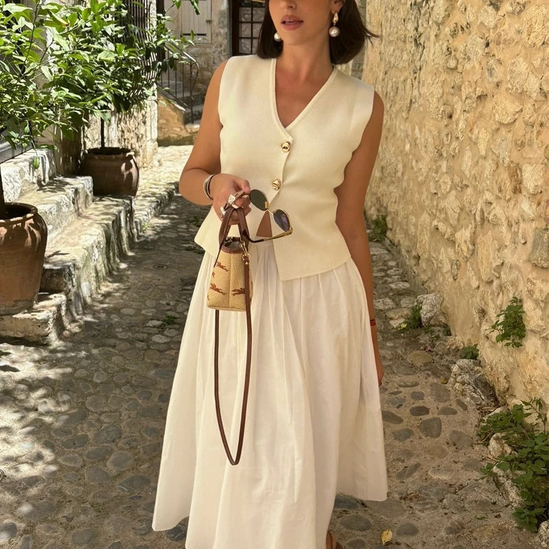 De Elise Knit Vest straalt tijdloze elegantie uit. Het verfijnde design met knoopsluiting geeft je outfit een chique uitstraling, terwijl de zachte gebreide stof zorgt voor comfort en klasse. Perfect te combineren met een rok of jeans voor zowel een casual daglook als een stijlvolle avondoutfit.